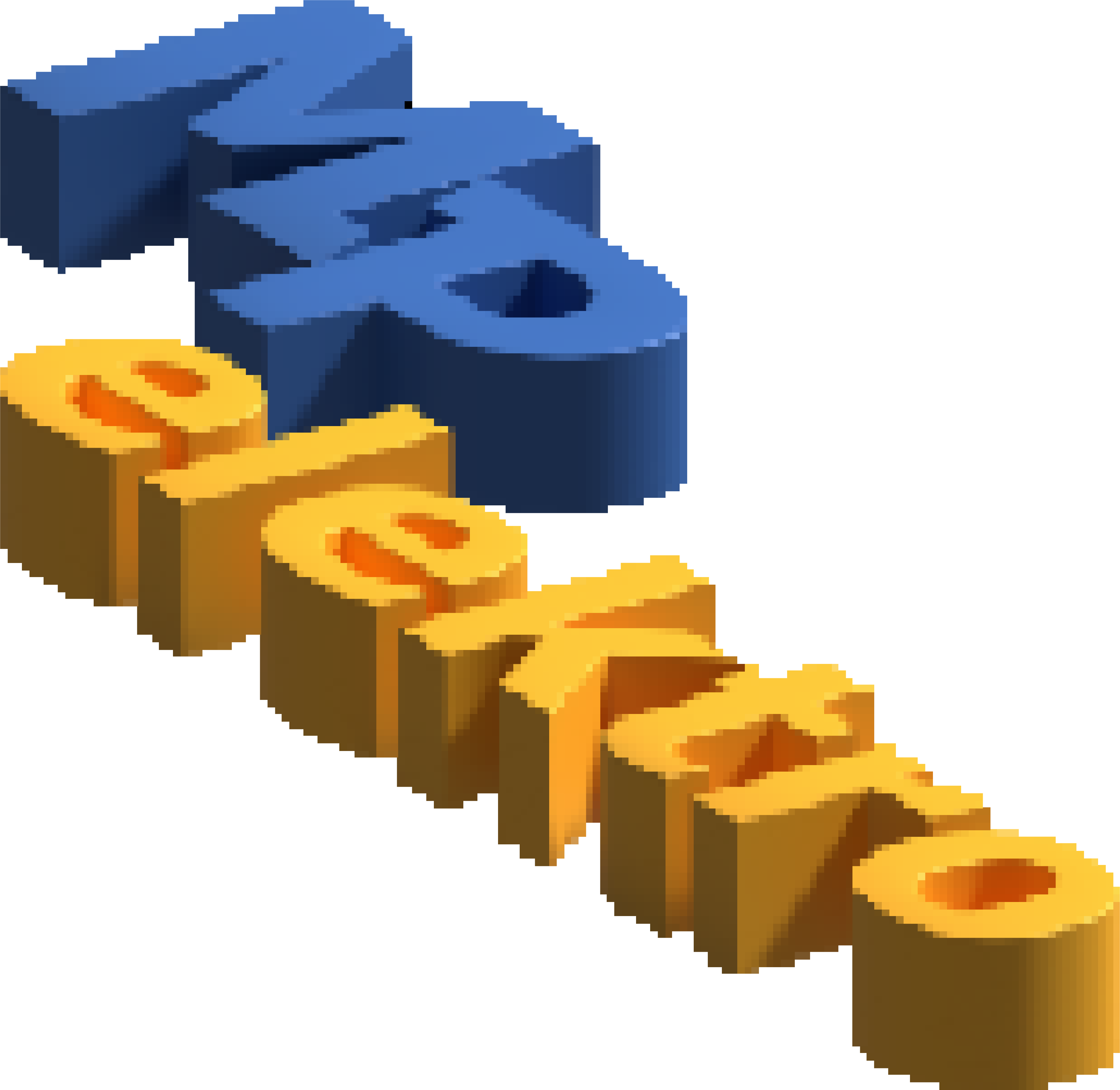 Das verpixelte Logo von MP Elektro in 3D mit blauem MP und gelbem elektro.