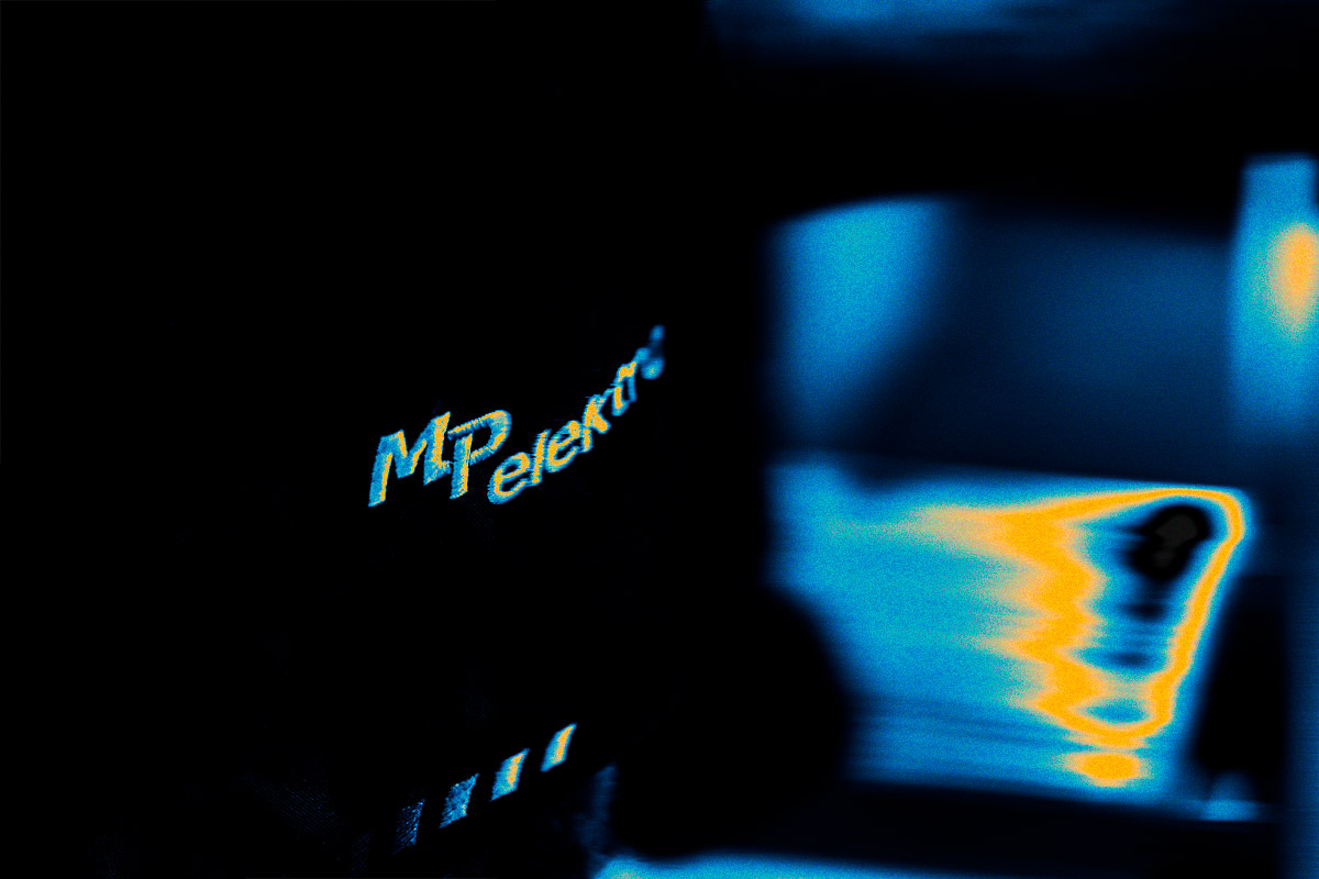 Ein kreatives Bild mit einem Gradient Map und Motion Blur Effekt des Logos von MP Elektro.