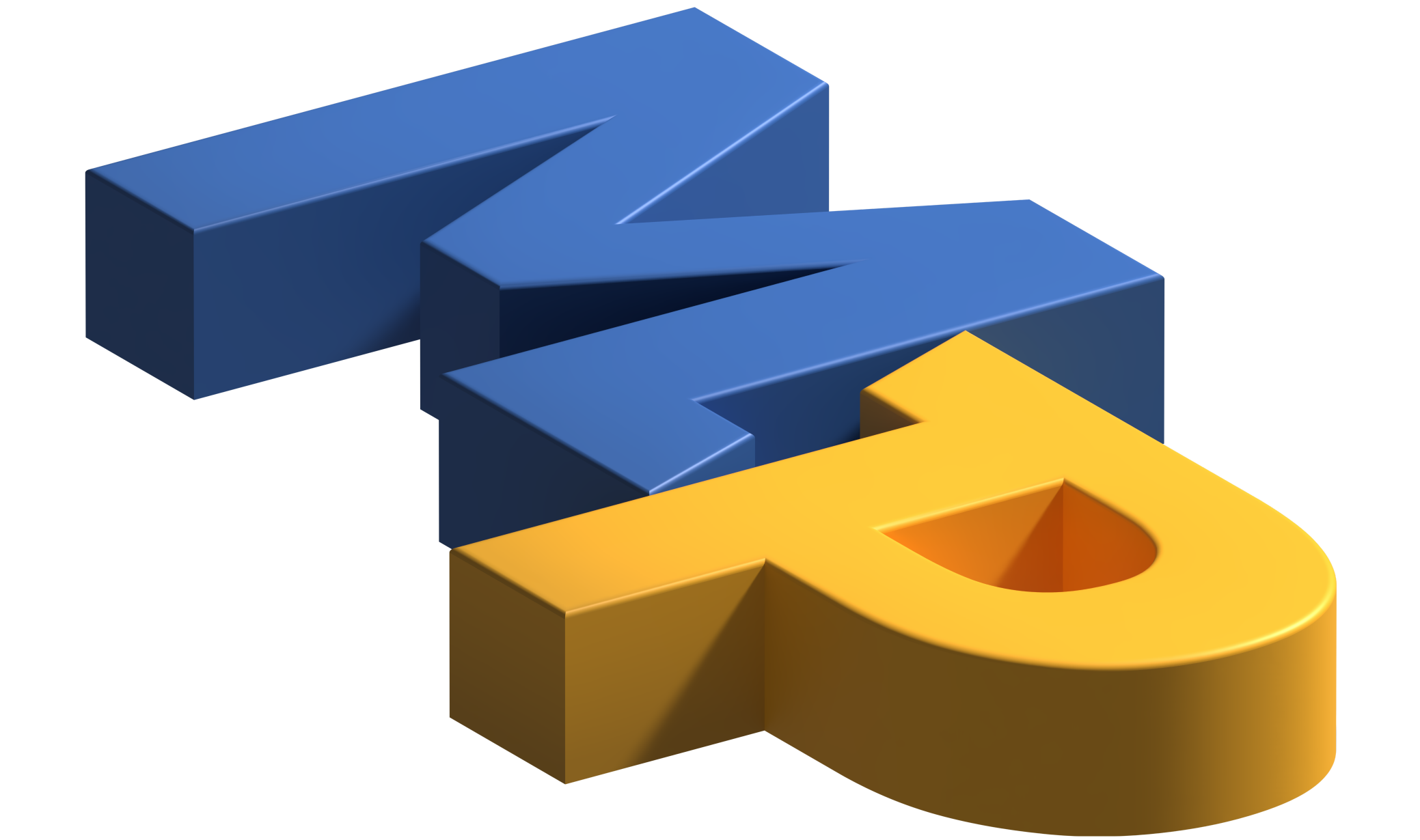 Das Logo von MP Elektro in 3D mit blauem M und gelbem P.